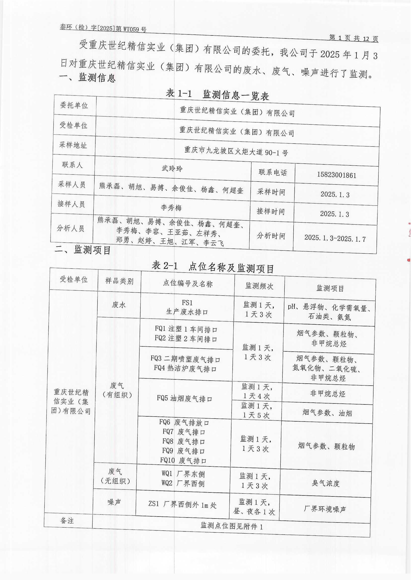 重慶世紀(jì)精信實(shí)業(yè)(集團(tuán))有限公司(2019年)監(jiān)測(cè)報(bào)告