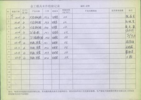 鈑金車間車間首件、制程巡檢、末件表
